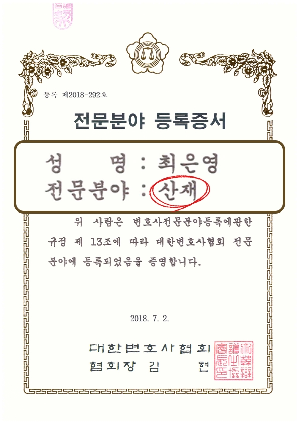 대한변호사협회 등록 「산재」, 「형사」,「손해배상」 전문 변호사 가