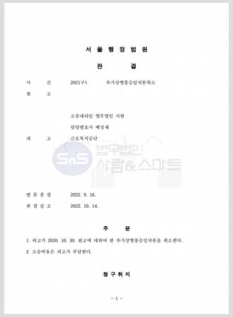 발목 족관절 관절염, 퇴행성으로 추가상병 산재 불승인 - '취소' 결정