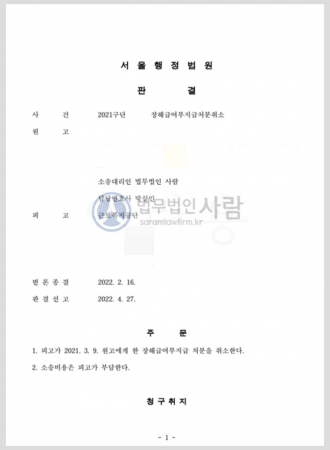 건설현장 일용직 소음성 난청 산재, 장해급여 부지급 처분 - "취소" 판결