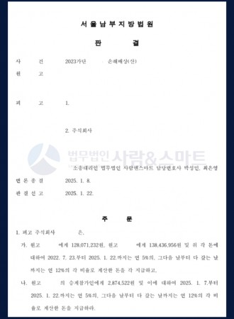 뇌출혈 산재 손해배상 청구 소송, 피고회사측 전부승소 가능성 속 신속 조정으로 마무리 8,800→2,900만…