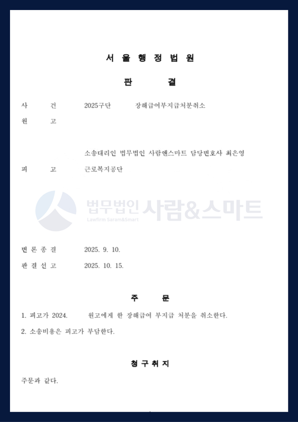 그 결과, 법원은 장해급여 부지급 처분 [취소] 판결을 내리며,